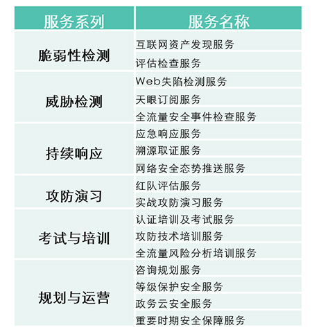 我们的安全服务团队以攻防技术为核心,聚焦威胁检测和响应,通过提供咨询规划、威胁检测、攻防演习、持续响应、预警通告、安全运营等一系列实战化的服务,在云端安全大数据的支撑下,为客户提供全周期的安全保障服务,成为客户信赖的最专业的网络安保和应急响应团队!